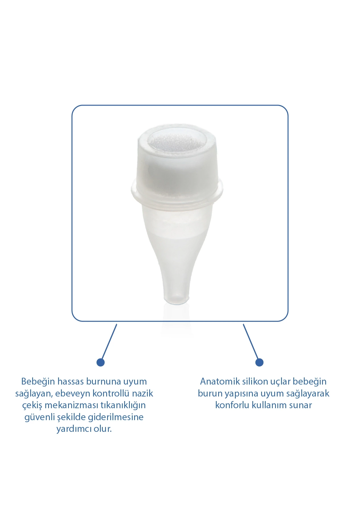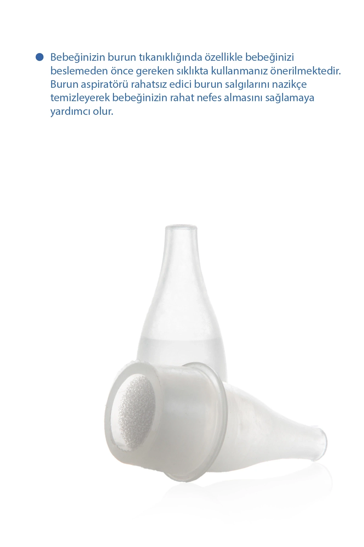 Burun aspiratörü rahatsız edici burun salgılarını nazikçe temizleyerek bebeğinizin rahat nefes almasını sağlamaya yardımcı olur.