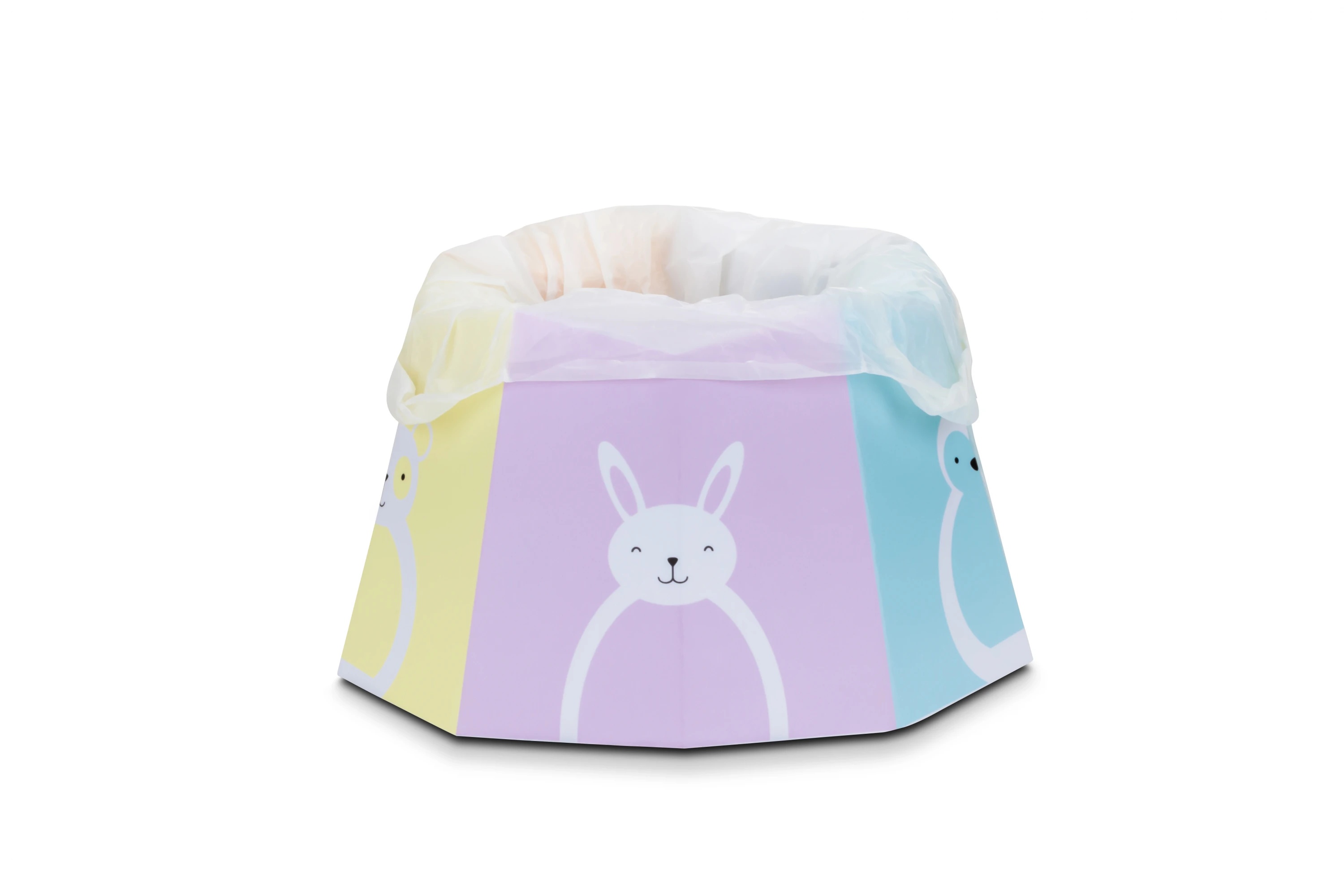 Çocukların seyahatlerinde hijyenik bir ortam sağlamak için ideal, desenli karton seyahat lazımlığı;