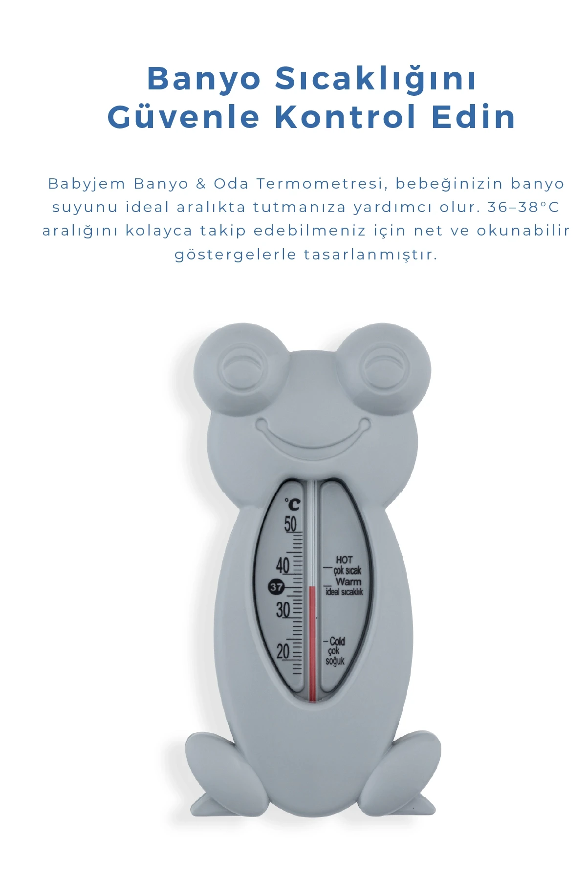 Babyjem Cıvasız Kurbağa Banyo Oda Termometresi Gri ile bebeklerinizin banyo keyfini güvenle yaşayabilirsiniz.