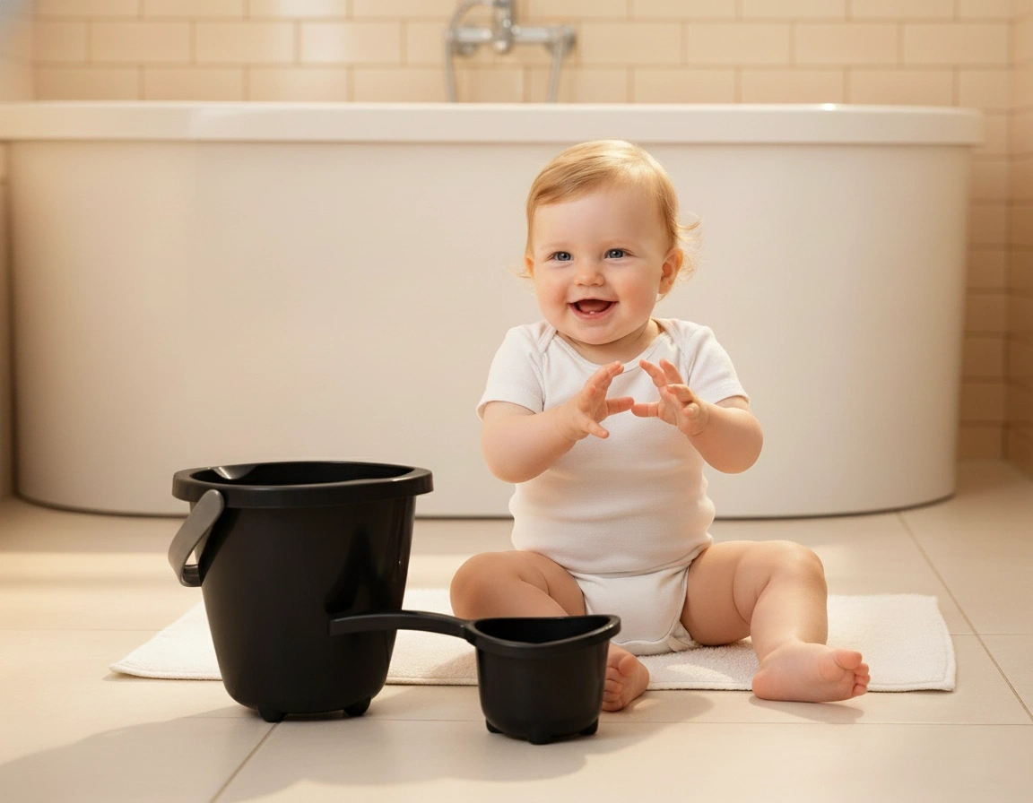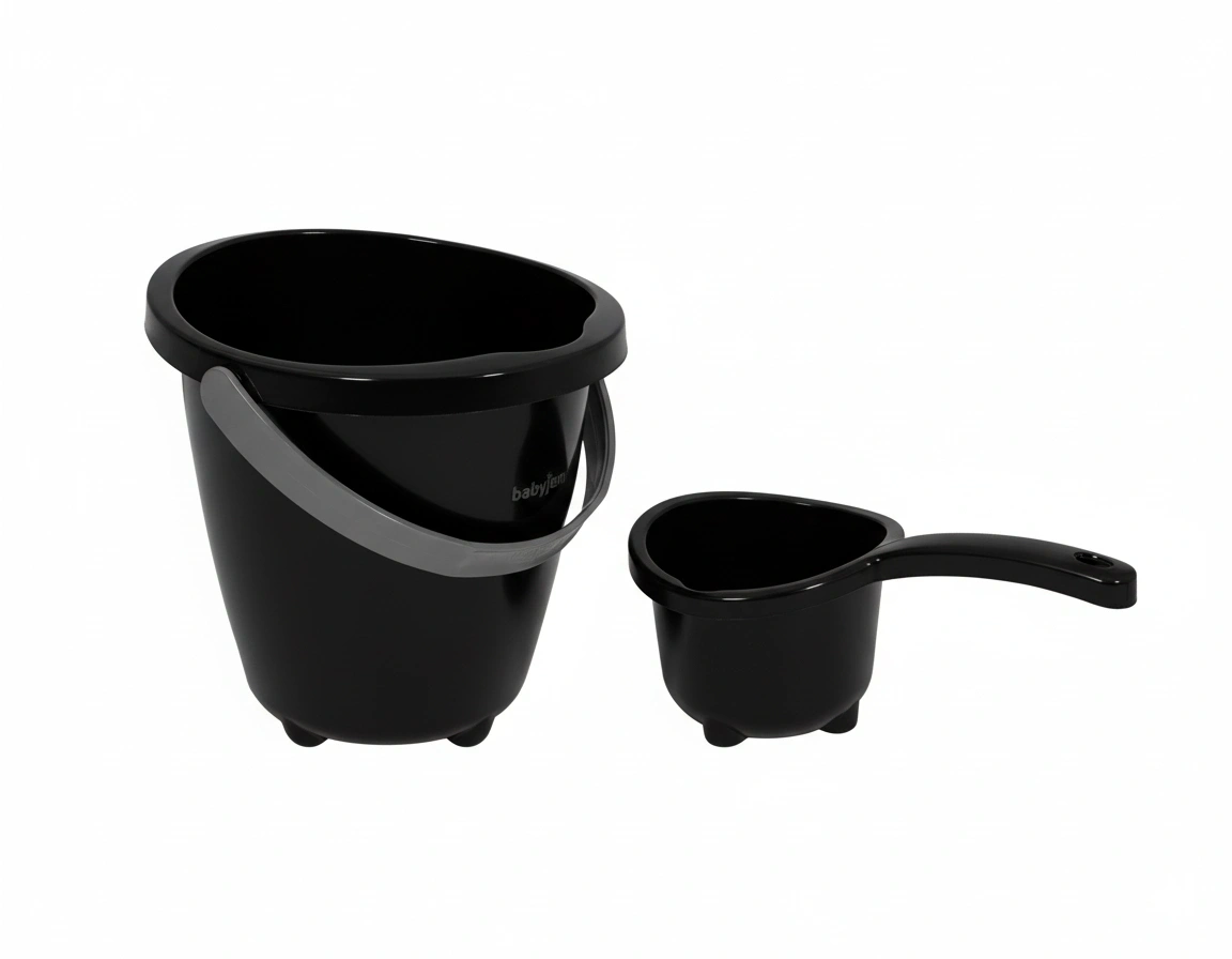 Babyjem Elegant Kova & Maşrapa Set Siyah, banyo zamanlarınızı daha keyifli hale getirecek şık ve pratik bir settir.