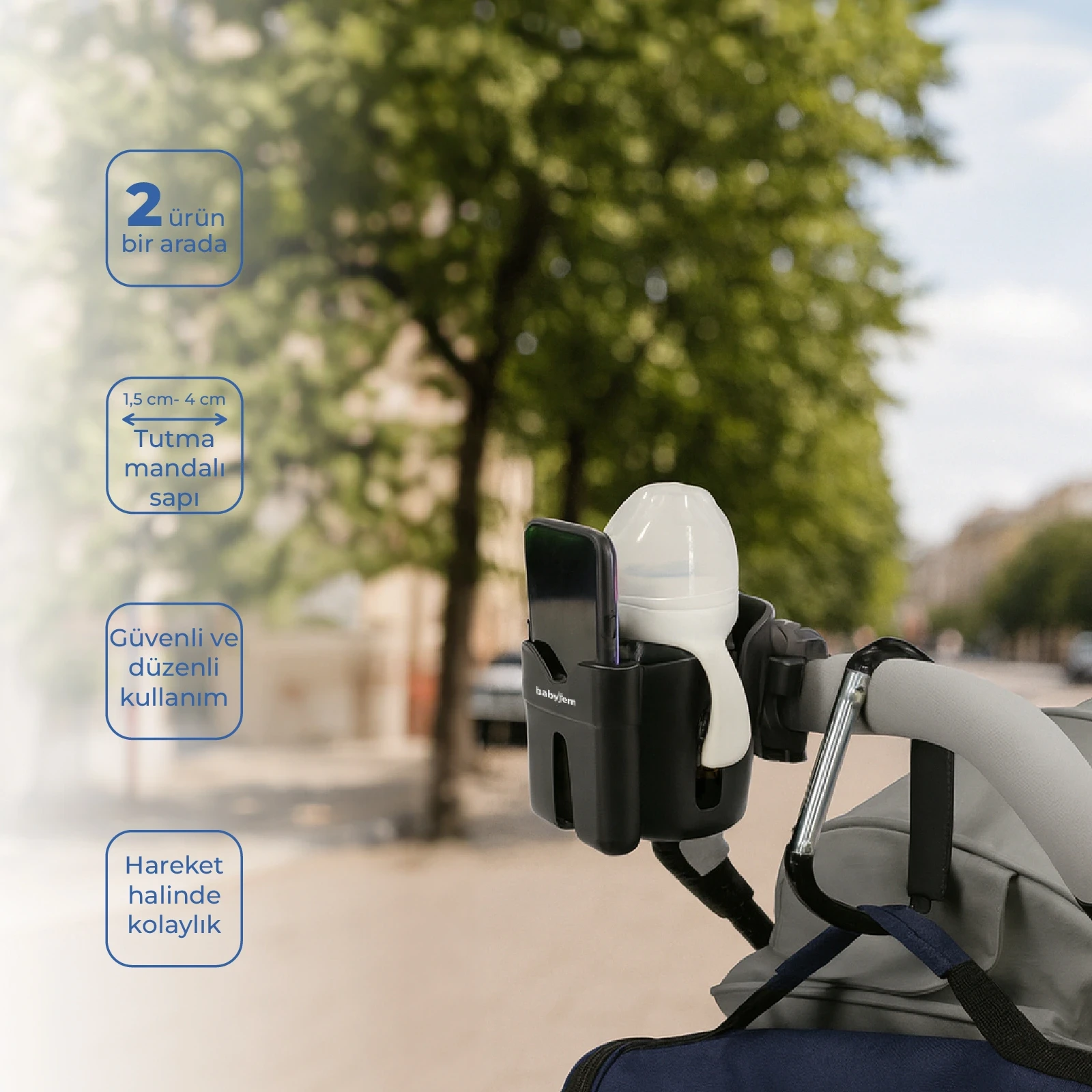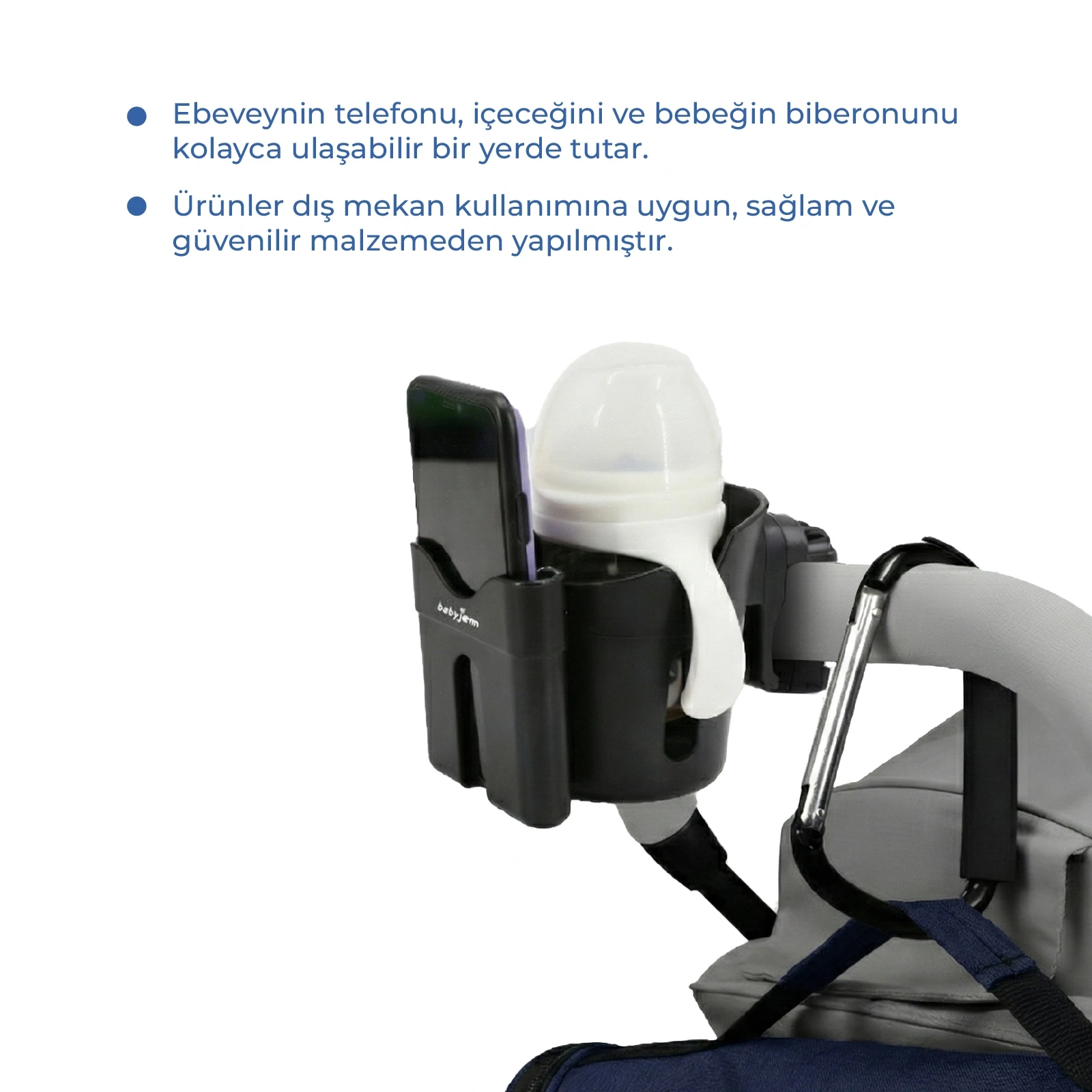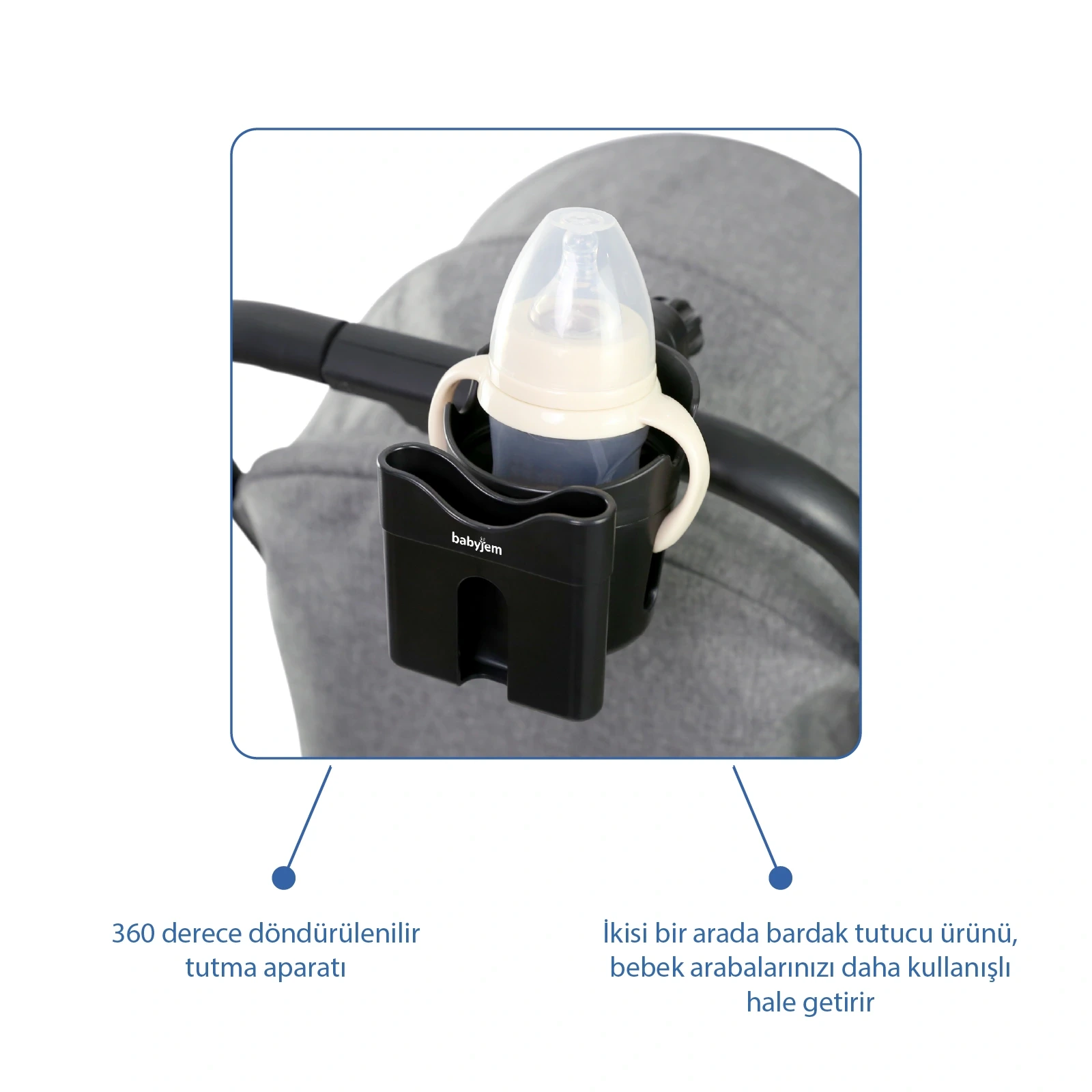 BABYJEM 925 Bebek Arabası Aksesuar Seti ile seyahatlerinizde bebeğinizin ihtiyaçlarına kolayca cevap verebilir ve onun konforunu ön planda tutabilirsiniz.