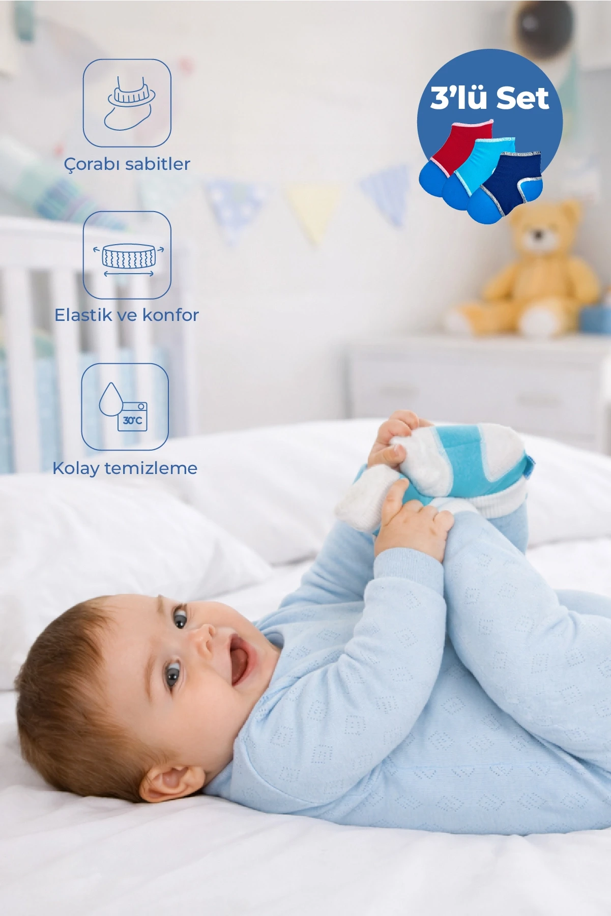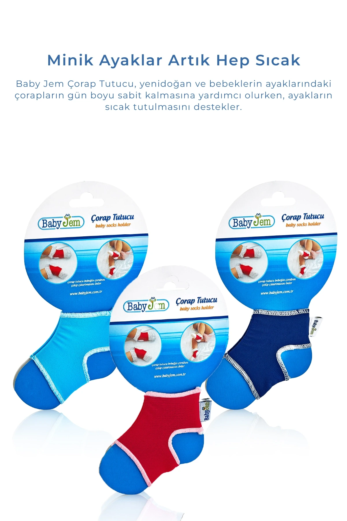 BABYJEM 932 BEBEK ÇORAP TUTUCU 3'LÜ SET, bebeklerinizin çoraplarını kaybetmenizi engelleyen pratik bir çözümdür. Ürün, Babyjem kalitesiyle üretilmiştir ve bebek bakımında büyük kolaylık sağlar.