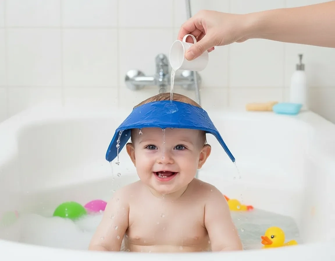Su ve şampuanın bebeğin gözlerine ve kulaklarına kaçmasını önler