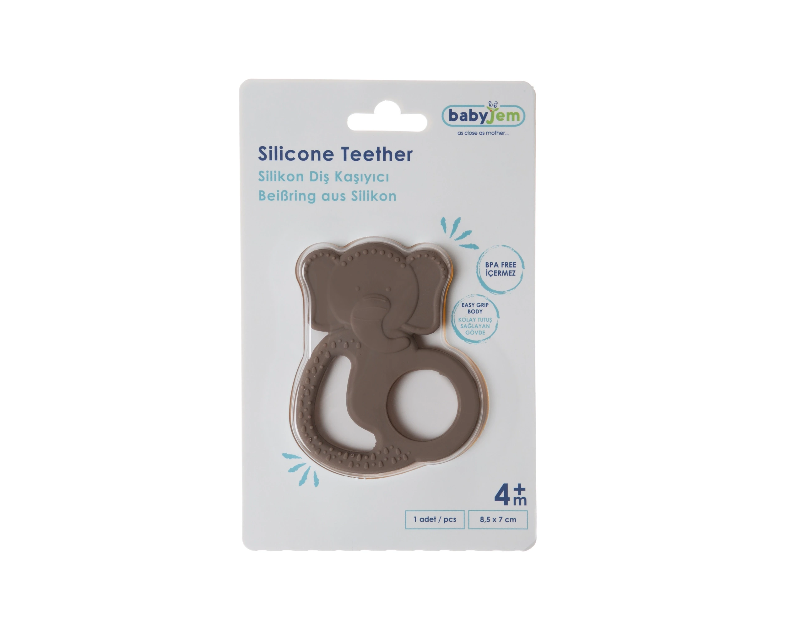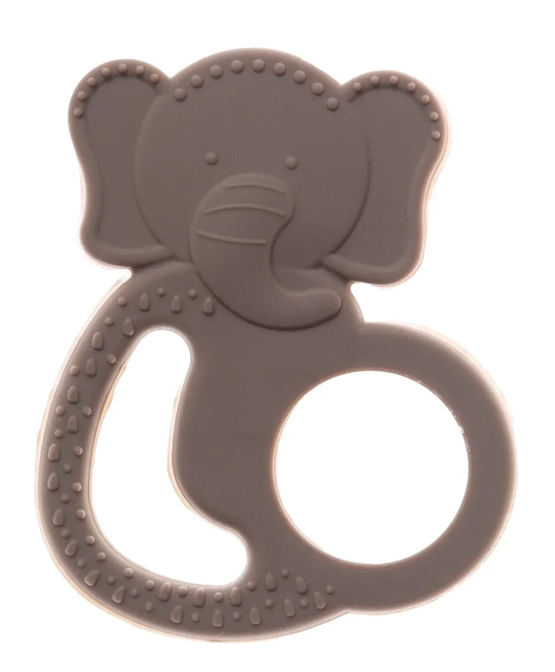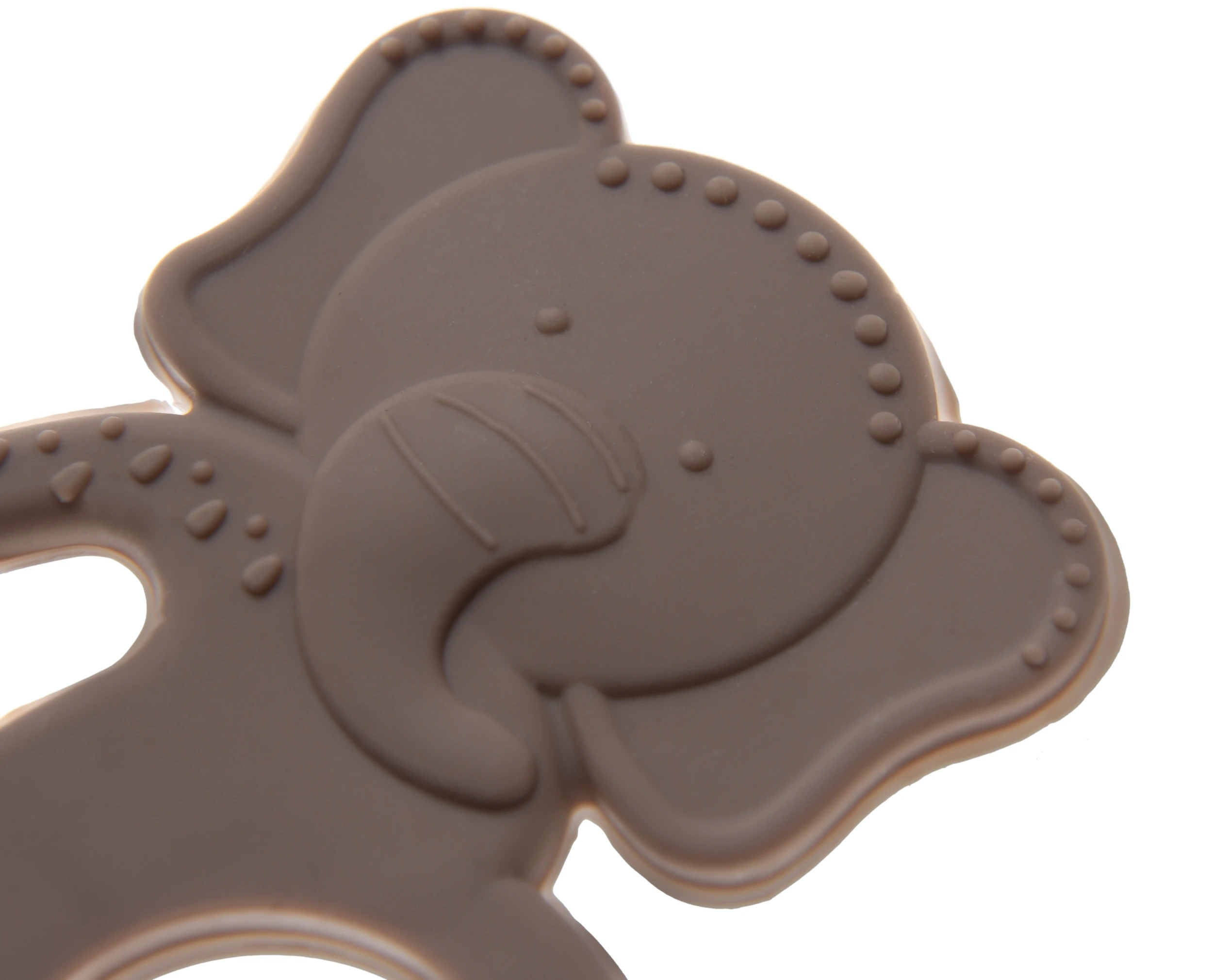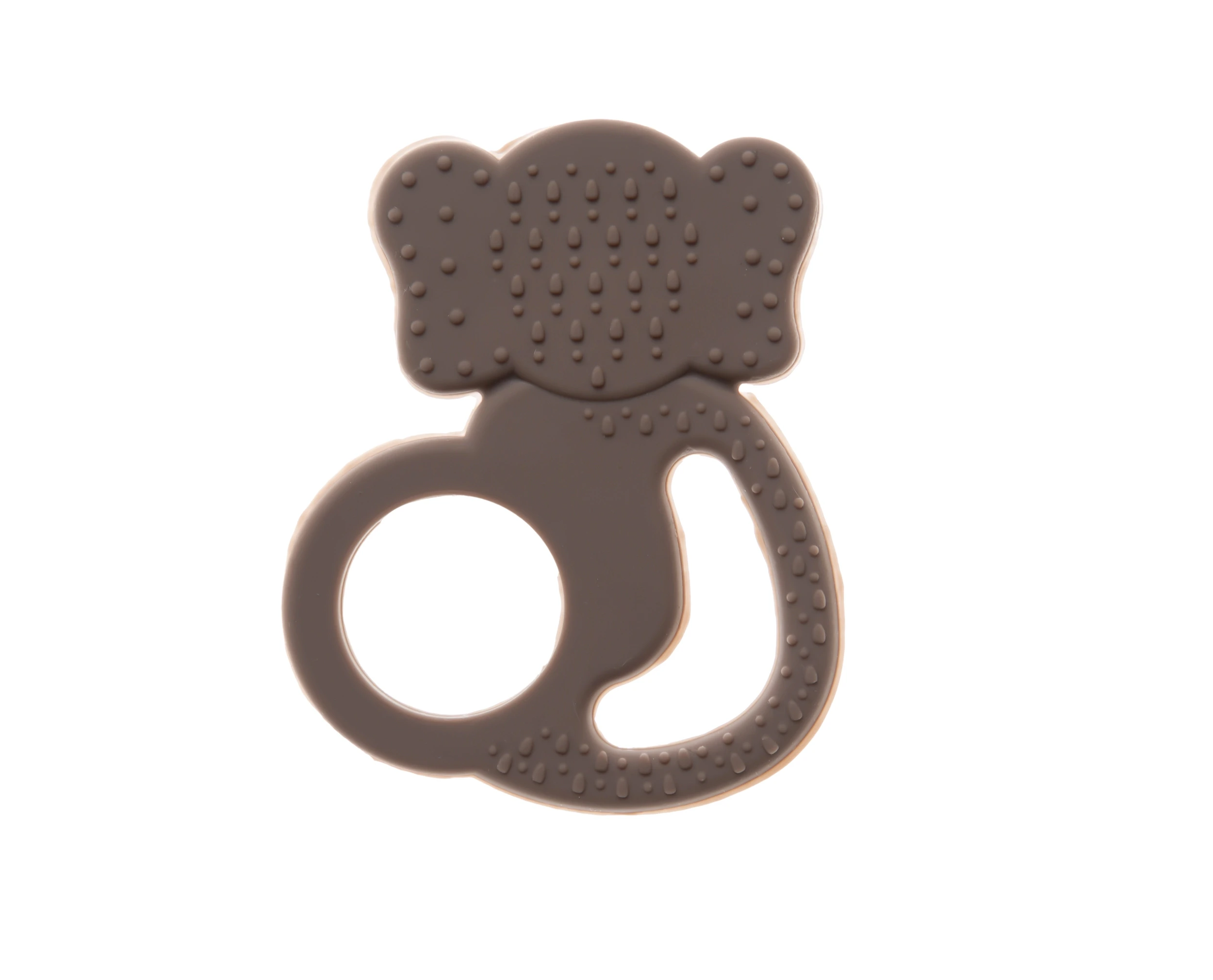 Babyjem Silikon Fil Diş Kaşıyıcı Latte, bebeğinizin diş çıkarma sürecinde rahatlamasına yardımcı olacak şirin bir tasarıma sahiptir.