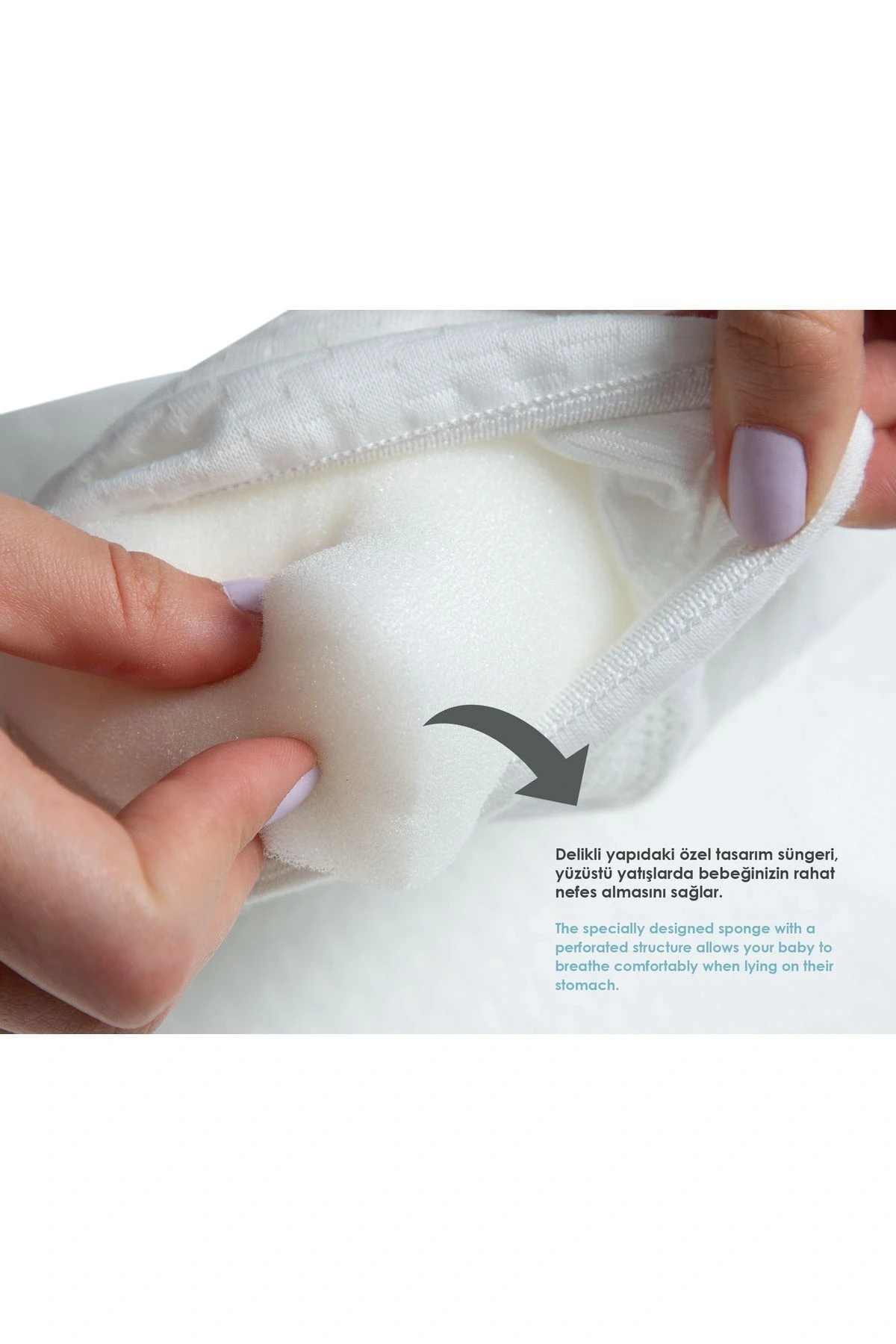 Destekleyici Sünger Yapısı: Orta sertlikte özel dolgu malzemesi, bebeğinizin sırtına ideal destek sağlar.