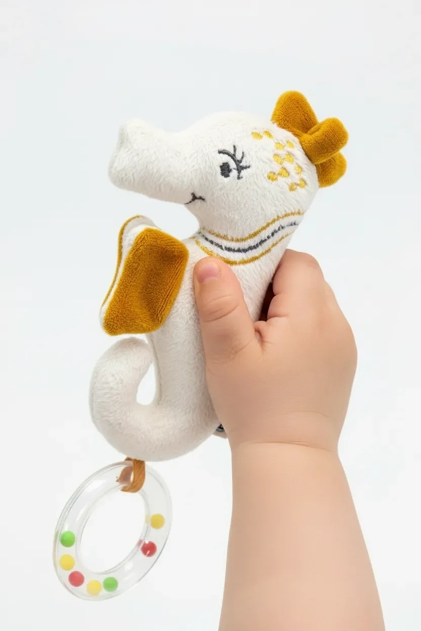 Babyjem Çıngıraklı Deniz Atı bebeklerin hem eğlenerek vakit geçirmesini sağlayan hem de diş çıkarma sürecinde rahatlamasına yardımcı olan şirin bir oyuncaktır.