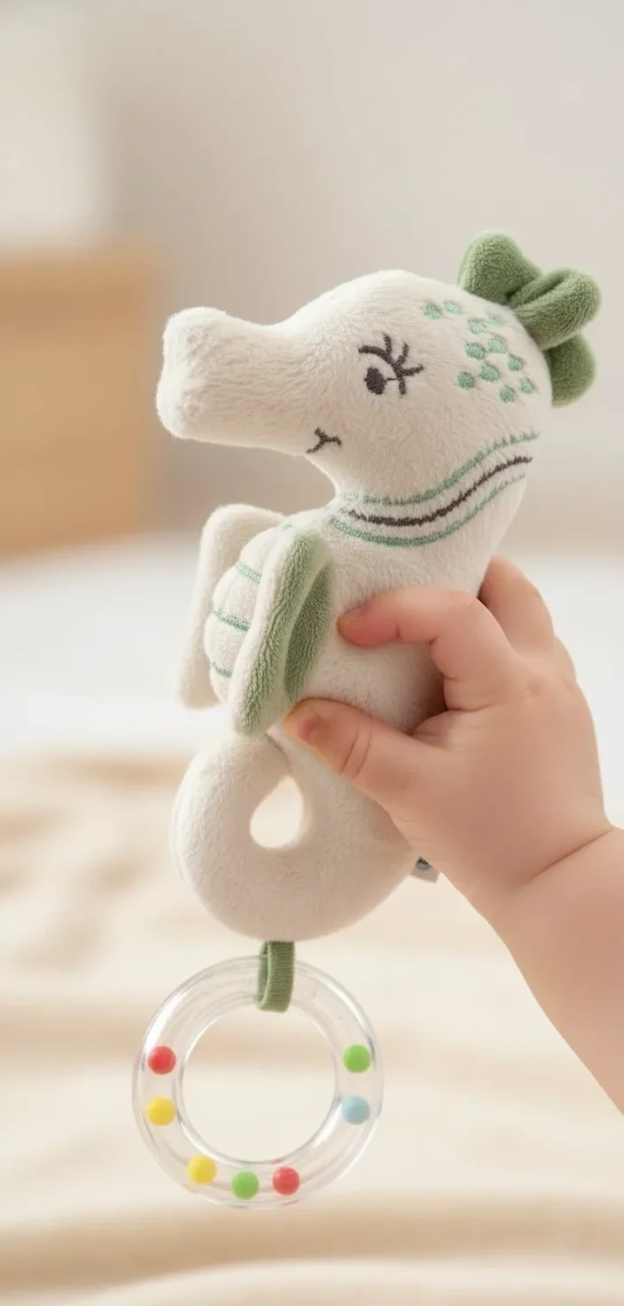 Babyjem Çıngıraklı Deniz Atı 818 Mint Yeşili, bebeklerin hem eğlenerek vakit geçirmesini sağlayan hem de diş çıkarma sürecinde rahatlamasına yardımcı olan şirin bir oyuncaktır.