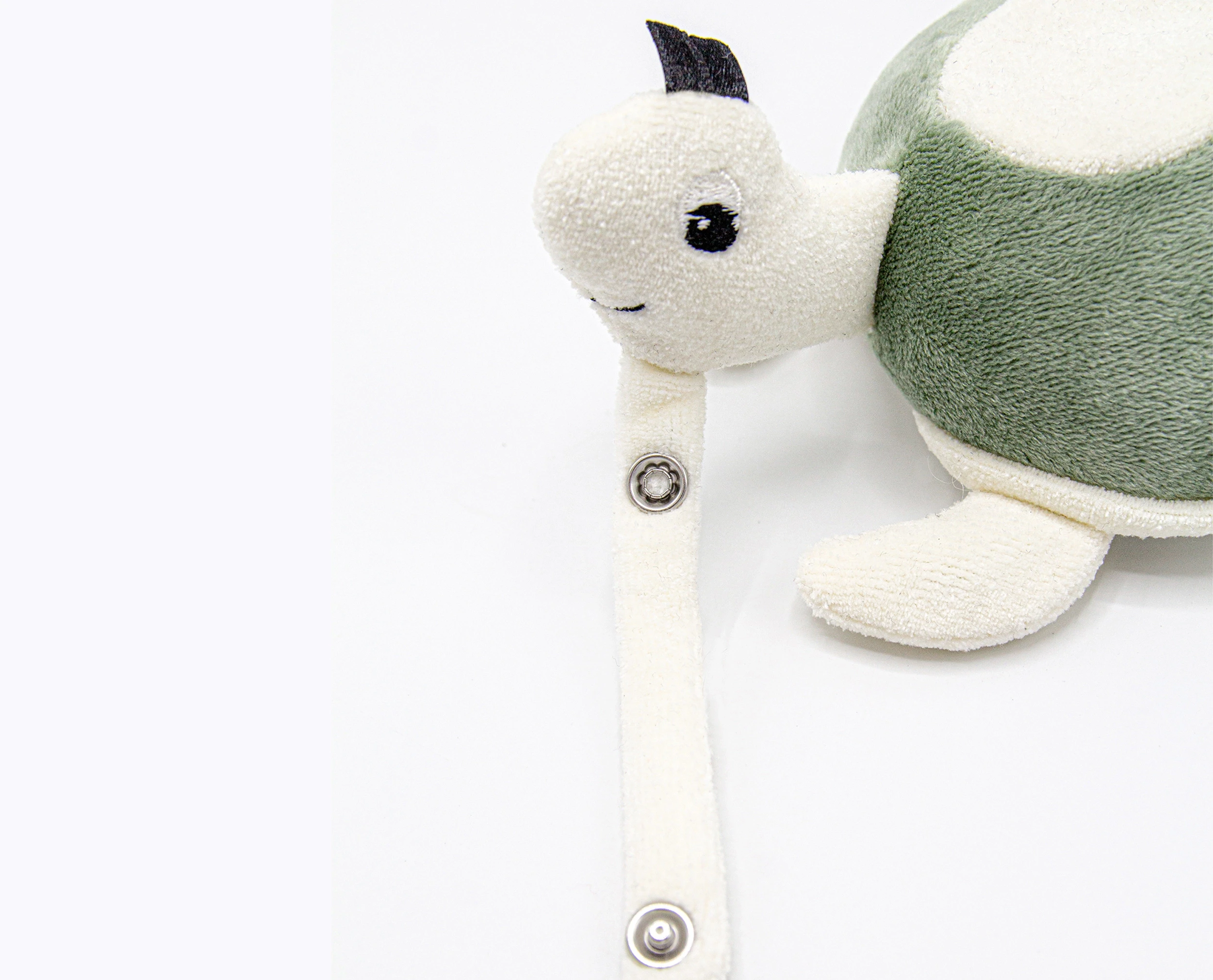 Kaplumbağa şekilli tasarımı ile bebeklerin keyifle vakit geçirmesini sağlar.