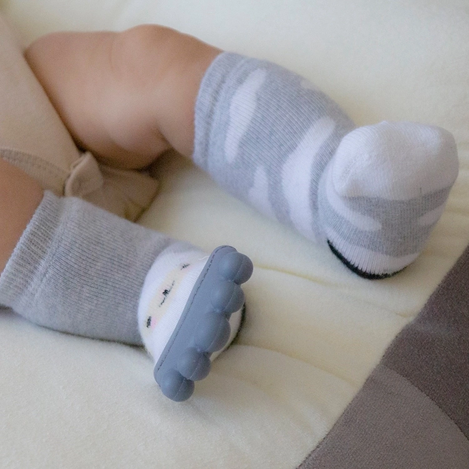 Çorap üzerinde bulunan özel tasarım diş kaşıyıcılar, bebeğinizin diş etlerini rahatlatır.