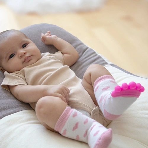 Babyjem Diş Kaşıyıcılı Havlu Bebek Çorap Pembe, bebeklerin diş çıkarma dönemlerinde rahatlatıcı bir çözüm sunar.