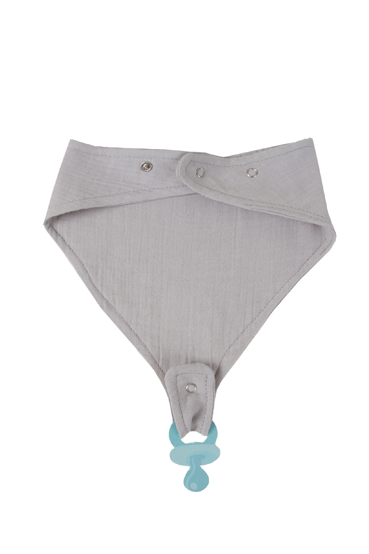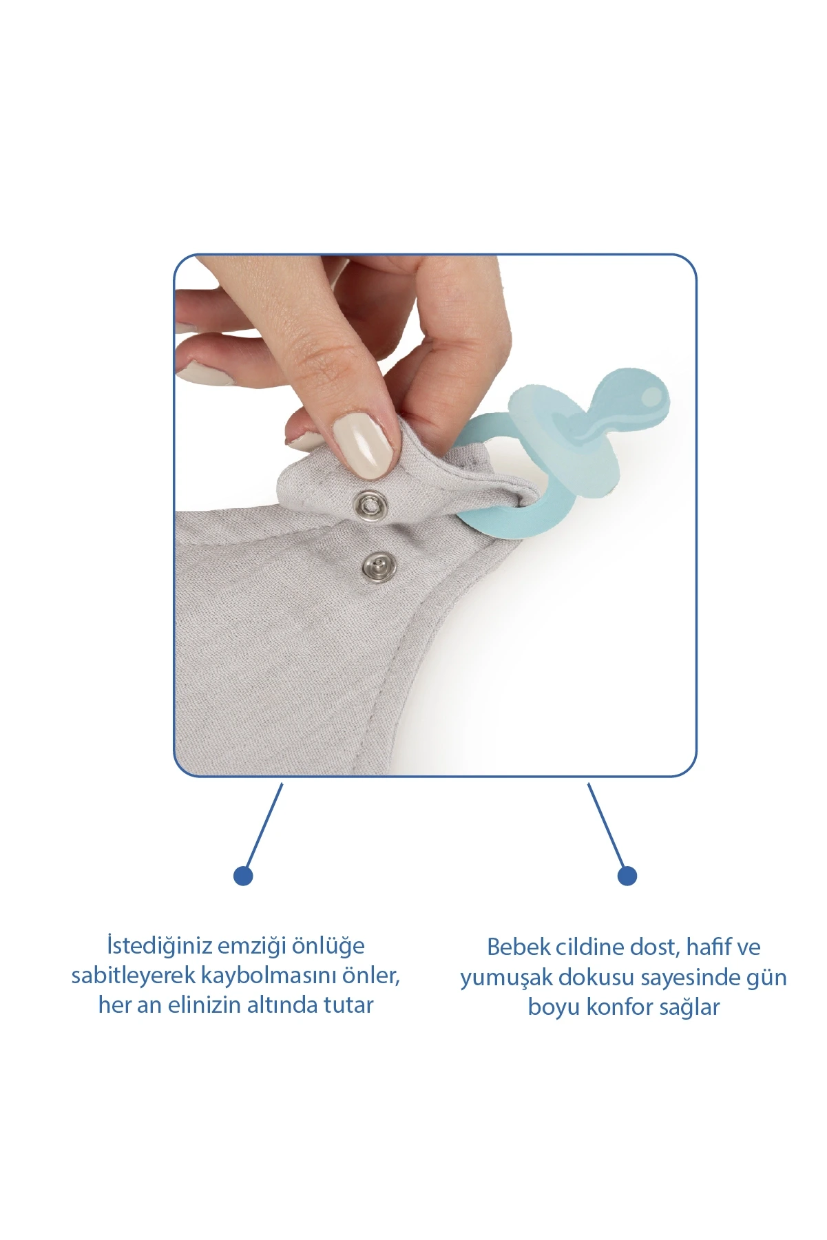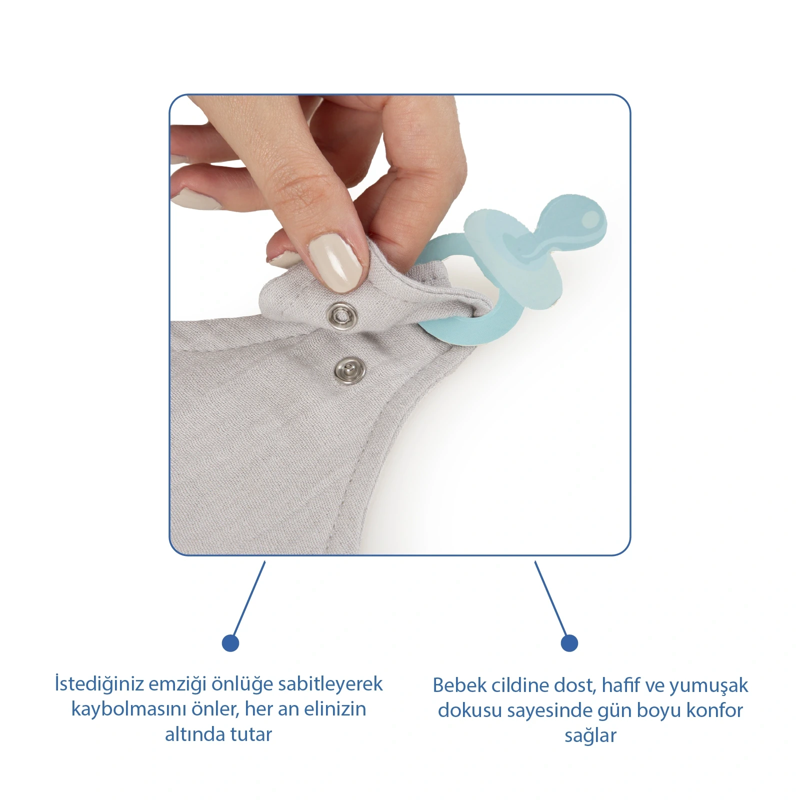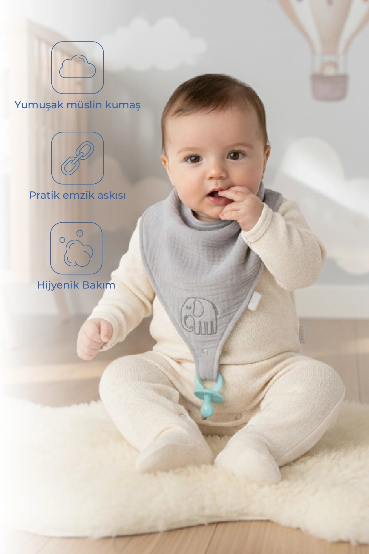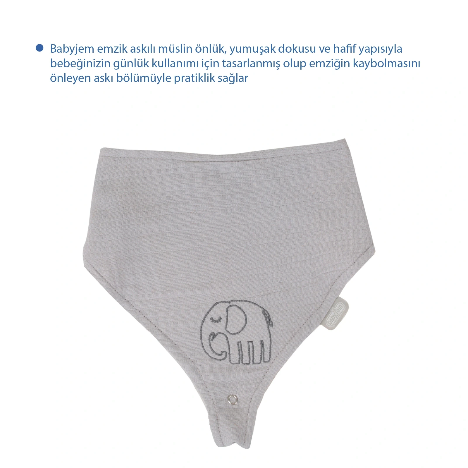 Babyjem Emzik Askılı Müslin Önlük Gri, bebekler için özel olarak tasarlanmış bir mama önlüğüdür.