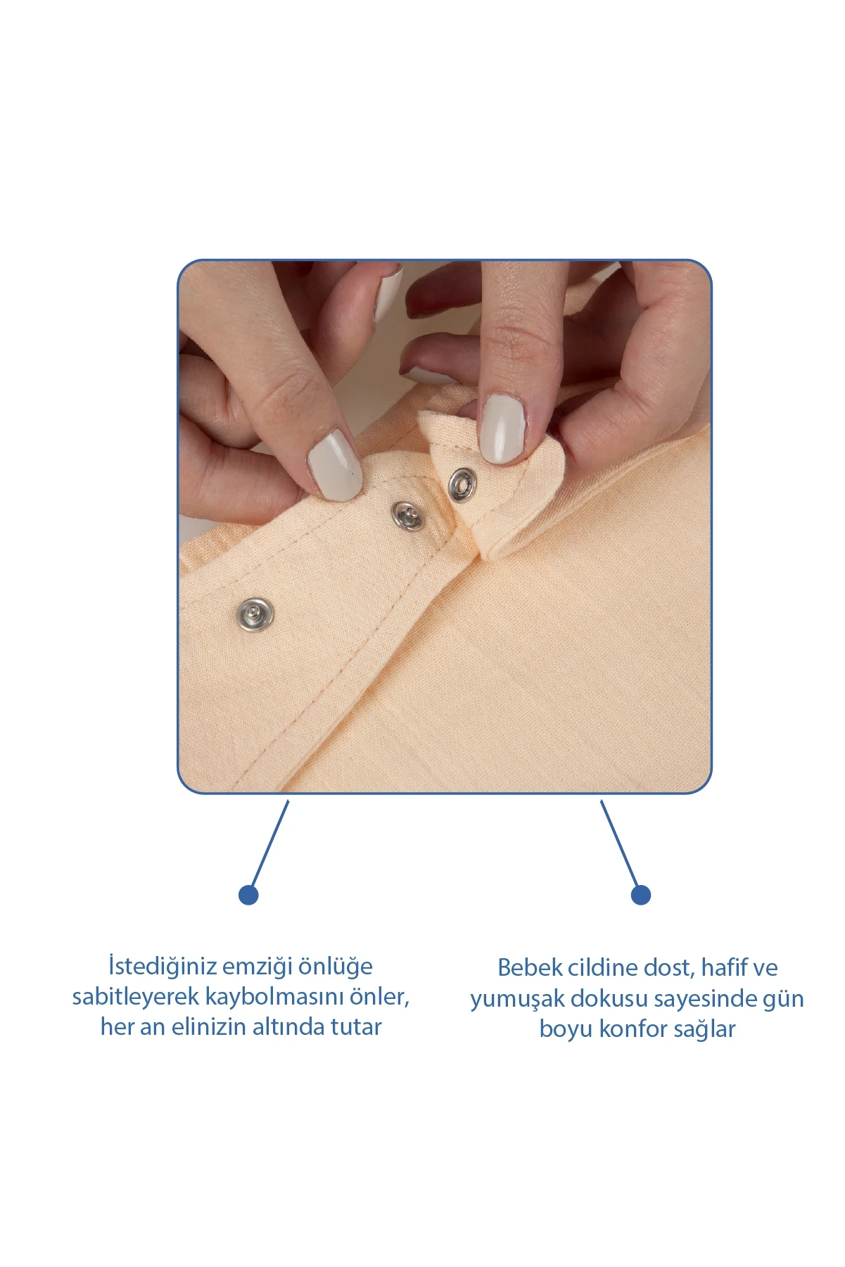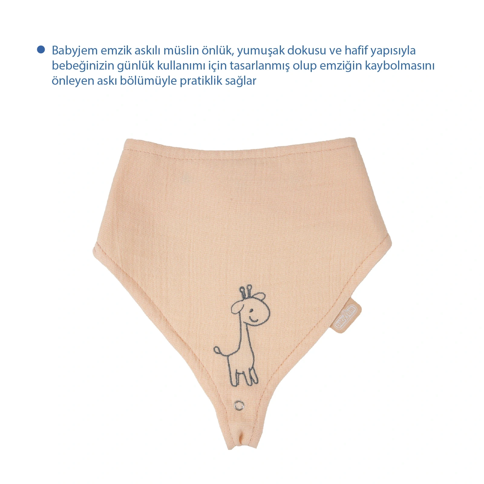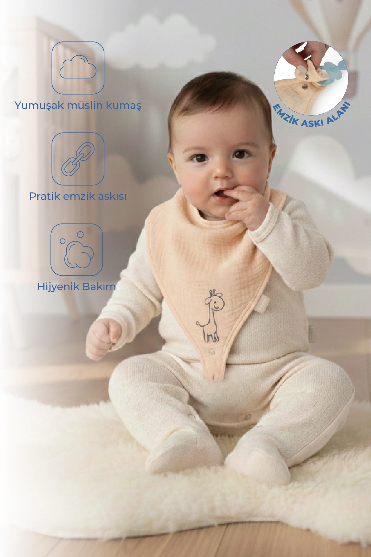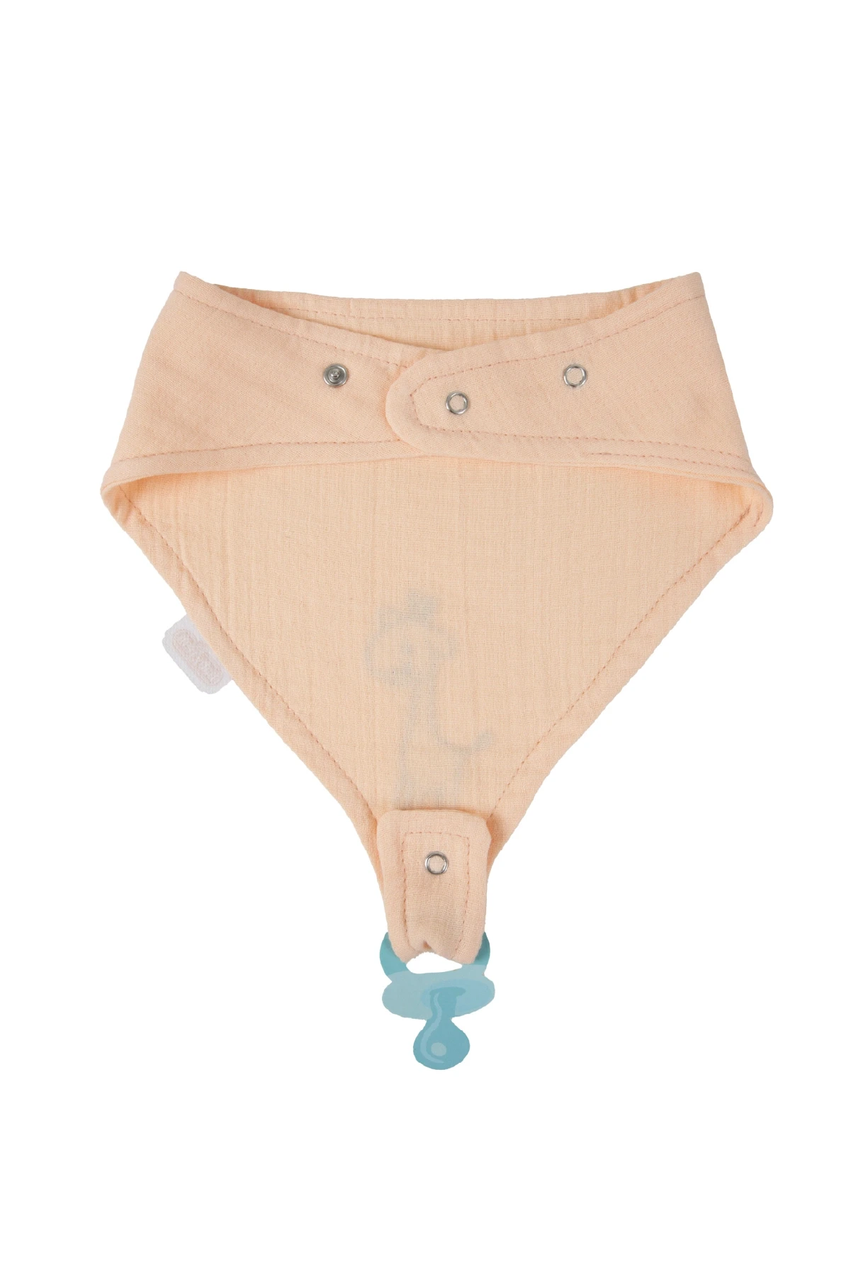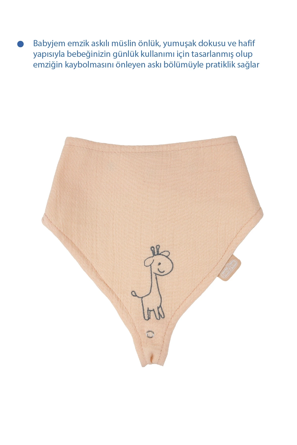 Babyjem Emzik Askılı Müslin Önlük Somon, bebeklerin beslenme zamanlarında kıyafetlerini korumak için tasarlanmış şık bir üründür.