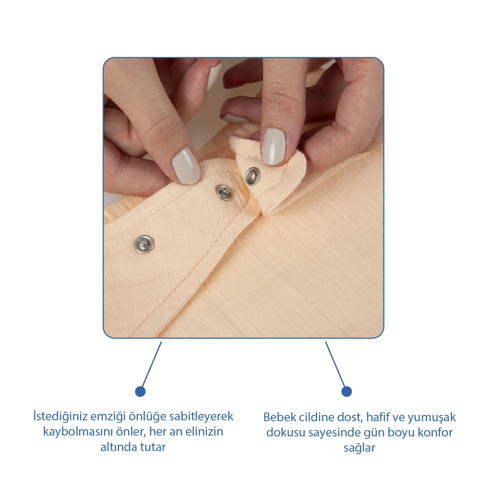 Hafif ve nefes alabilir müslin kumaştan üretilmiştir.