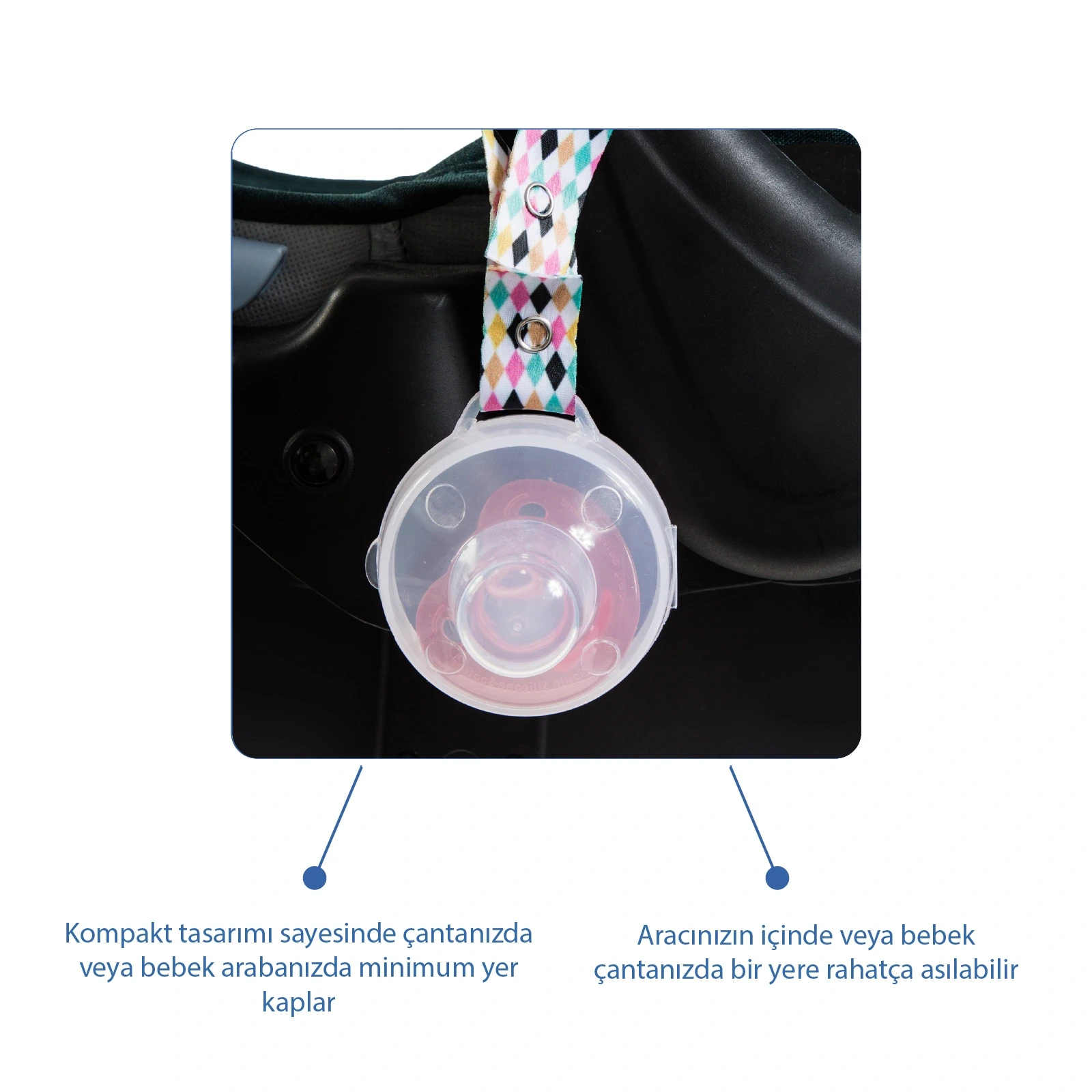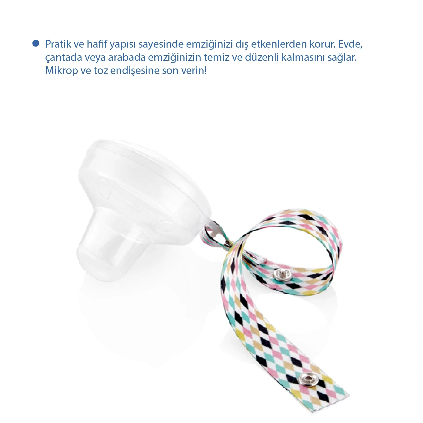 Babyjem Emzik Saklama Kabı, bebek emziklerini hijyenik bir şekilde muhafaza etmek ve taşımak için tasarlanmıştır.