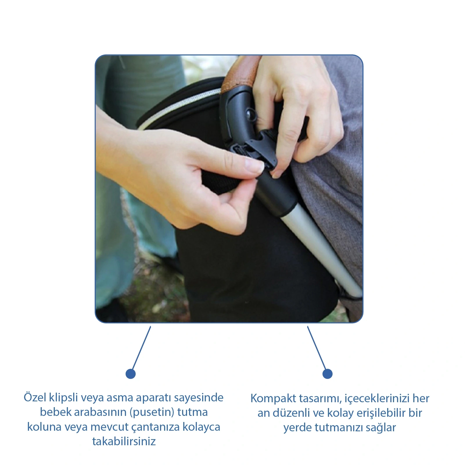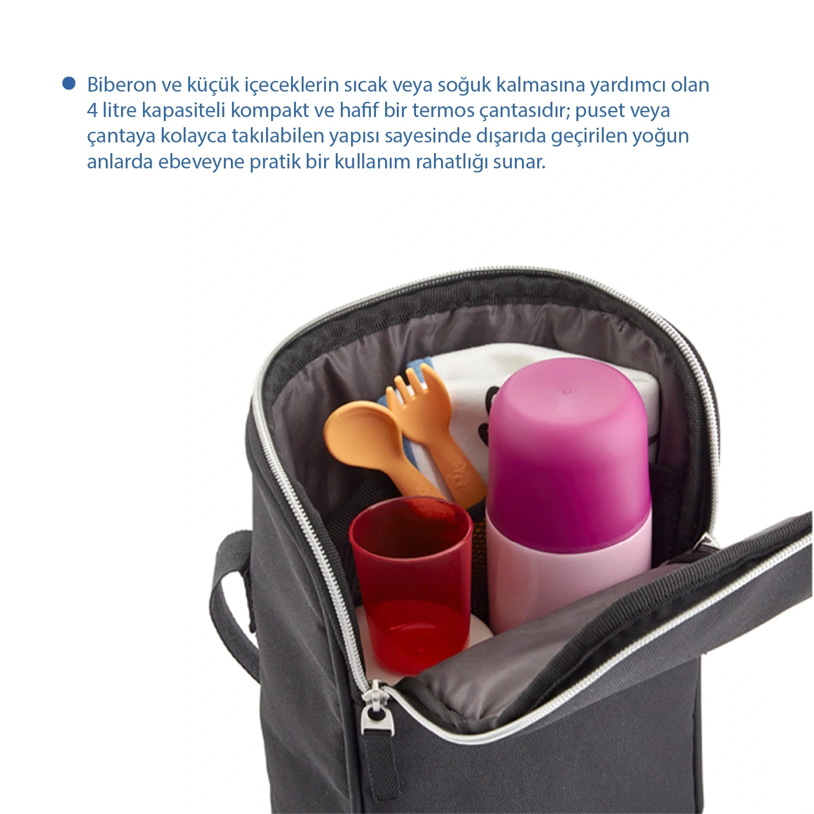 Kompakt tasarımı sayesinde taşıması son derece kolaydır. Dayanıklı dış kumaşı suya karşı dayanıklıdır ve fermuarlı kapağıyla güvenli bir şekilde kapanır. Geniş iç hacmi, hem biberon hem de küçük mama kaplarını rahatlıkla sığdıracak şekilde tasarlanmıştır.