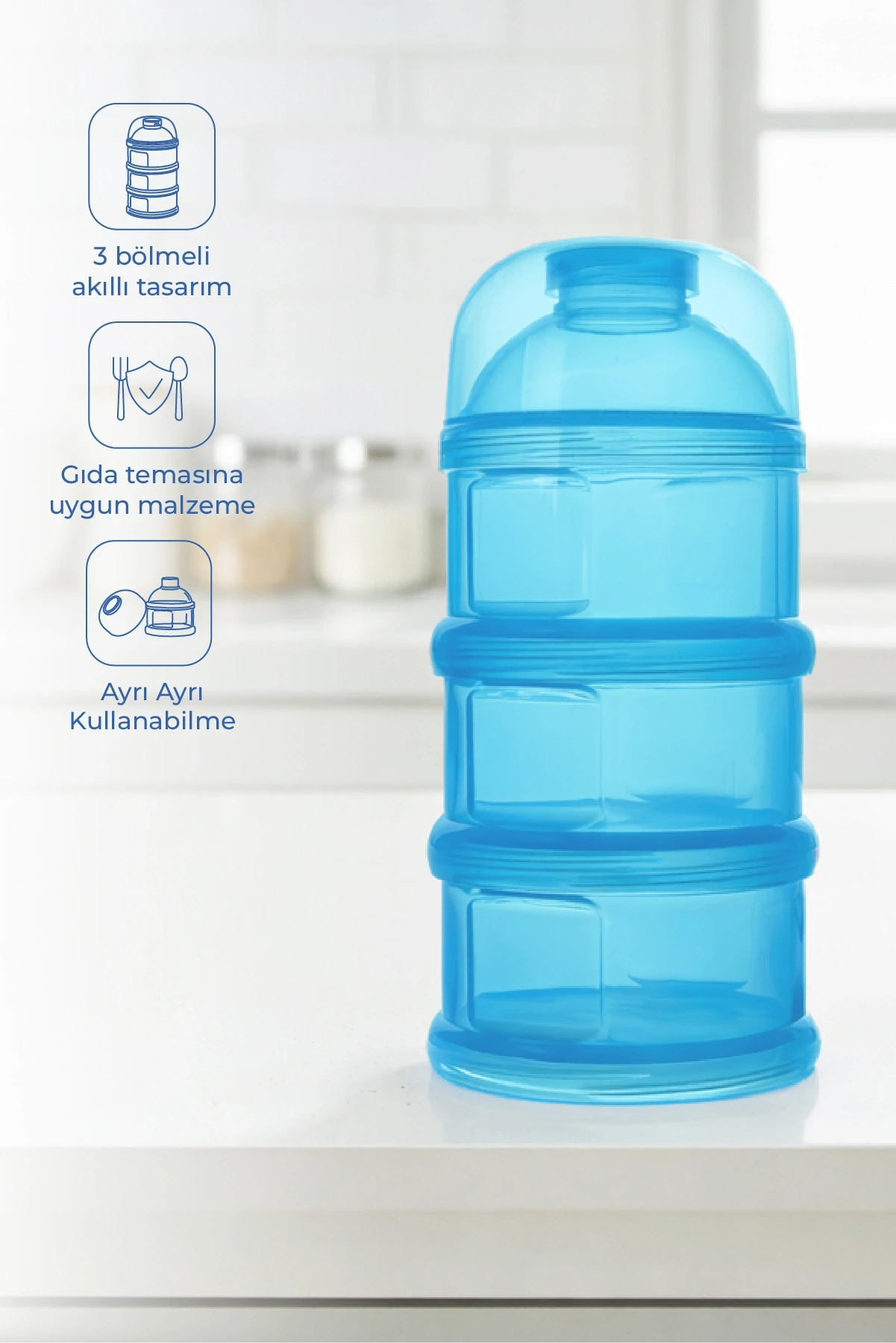 Katlı yapısı sayesinde bebeklerin farklı yiyecekleri kolayca ayırt etmelerine ve karışıklığı önlemelerine olanak tanır