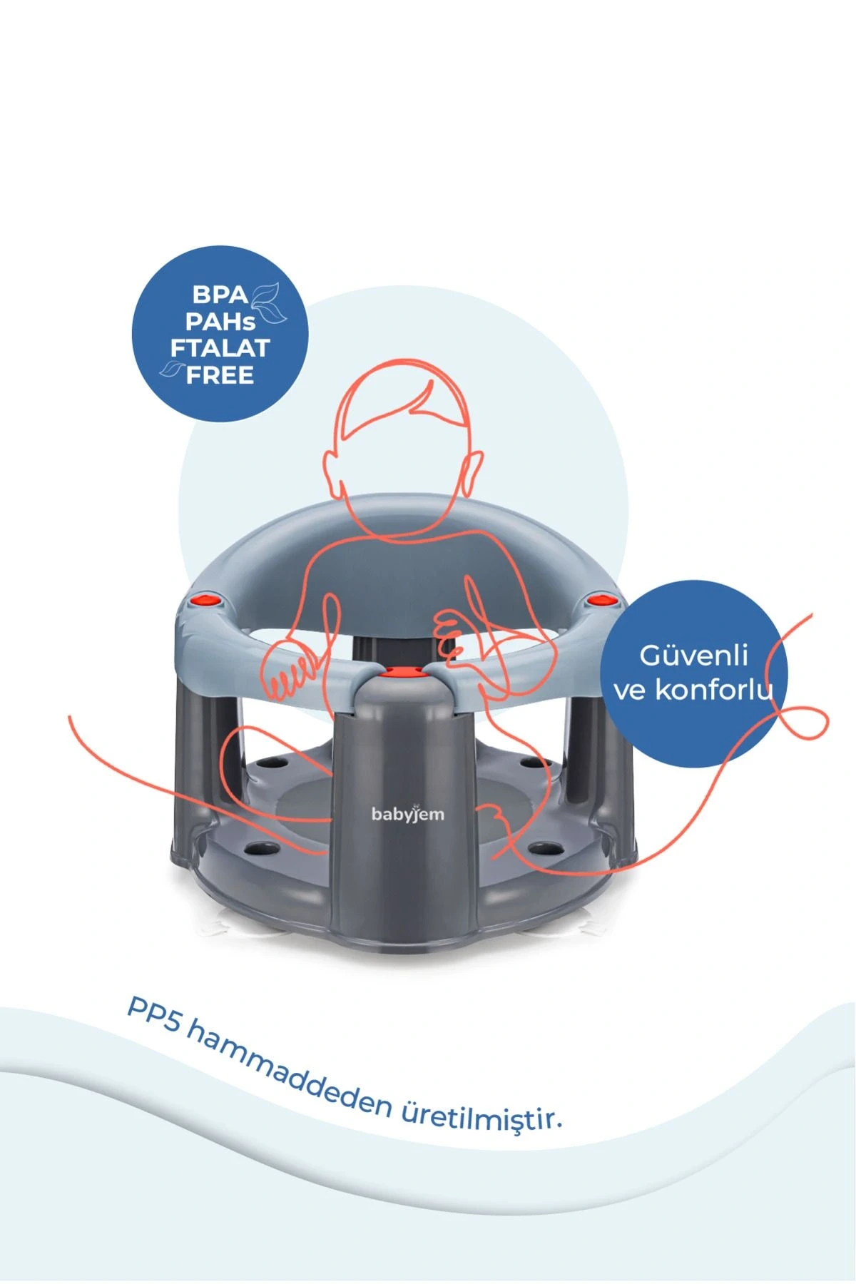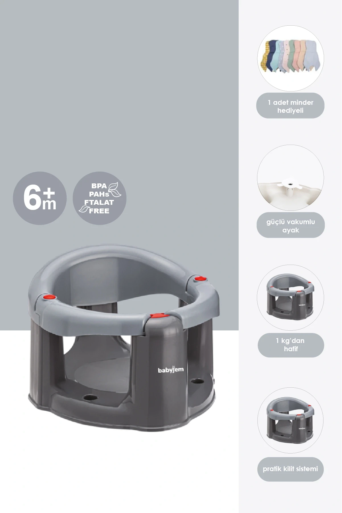 Babyjem Önden Açılır Banyo ve Mama Oturağı, bebeklerinizin banyo ve beslenme saatlerini daha konforlu hale getirmek için tasarlanmıştır. Bu şık ve kullanışlı ürün, bebeğinizin rahat bir şekilde oturmasını sağlayacak ve sizin de daha kolay bir şekilde banyo yaptırmanıza veya beslemesine yardımcı olacaktır.