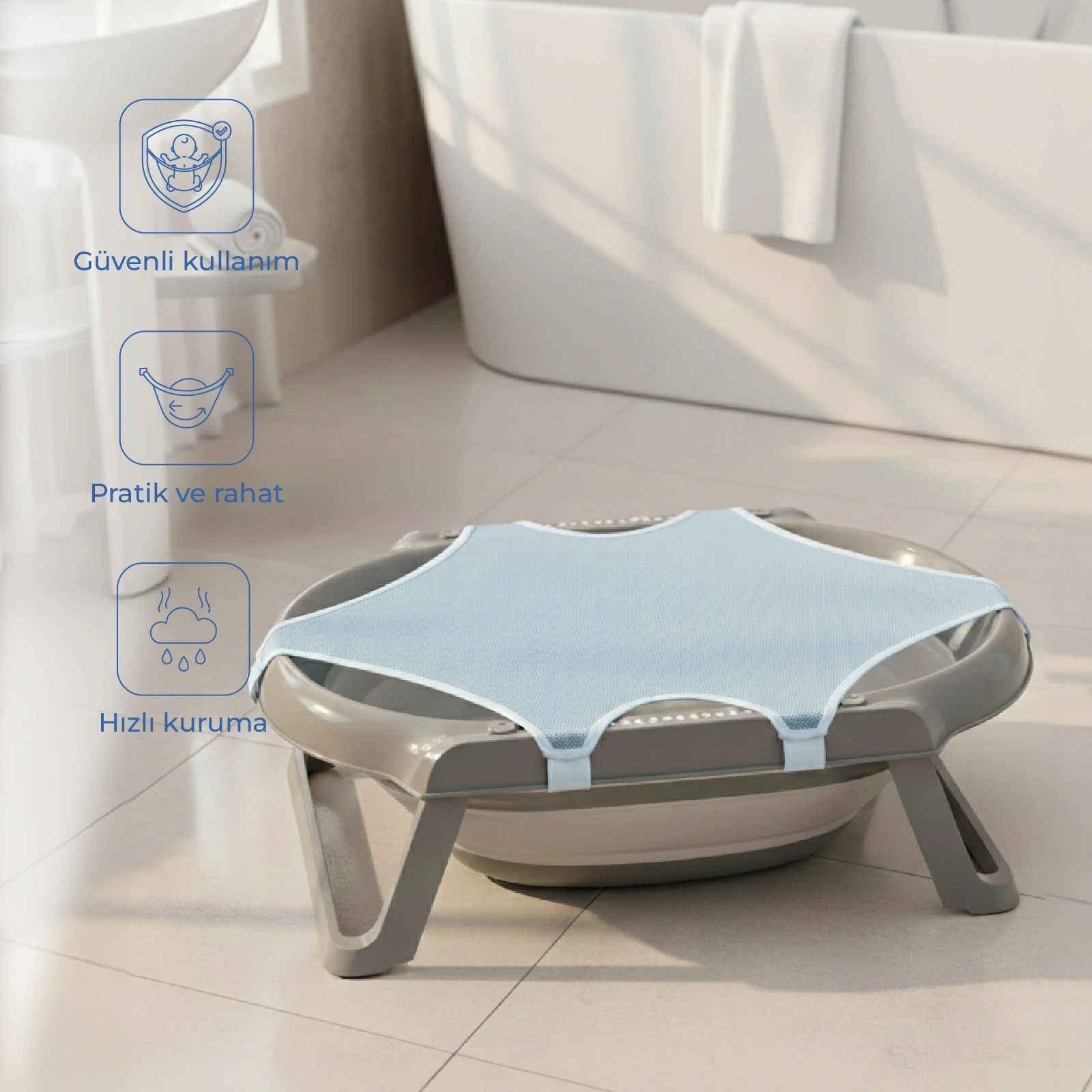 Babyjem Renkli Eko File Mavi ile banyo deneyimini hem eğlenceli hem de güvenli hale getirin!
